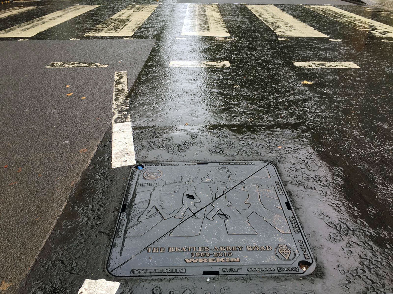 Thames Water has celebrated the 50th anniversary of the Abbey Road album with a specially-designed manhole cover depicting the Beatles on the zebra crossing.